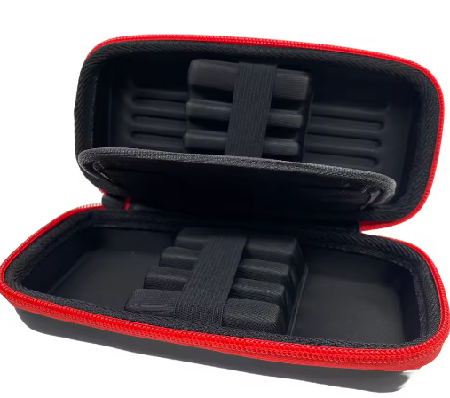 Darts Carry Case EVA Hard Shell Carry Case Holds a set of fully assembled darts and another set with flights removed.Space for extra flights stems etc. In Black with red zipper closure.