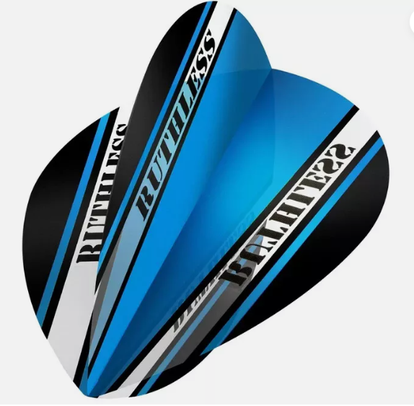 Ruthless V100 Pro Dart Flights in Blue. Extra Strong 100 Micron. Each pack contains 3 flights.Super tough dart flights with striking designs in pear teardrop shape and will fit any dart stems.
